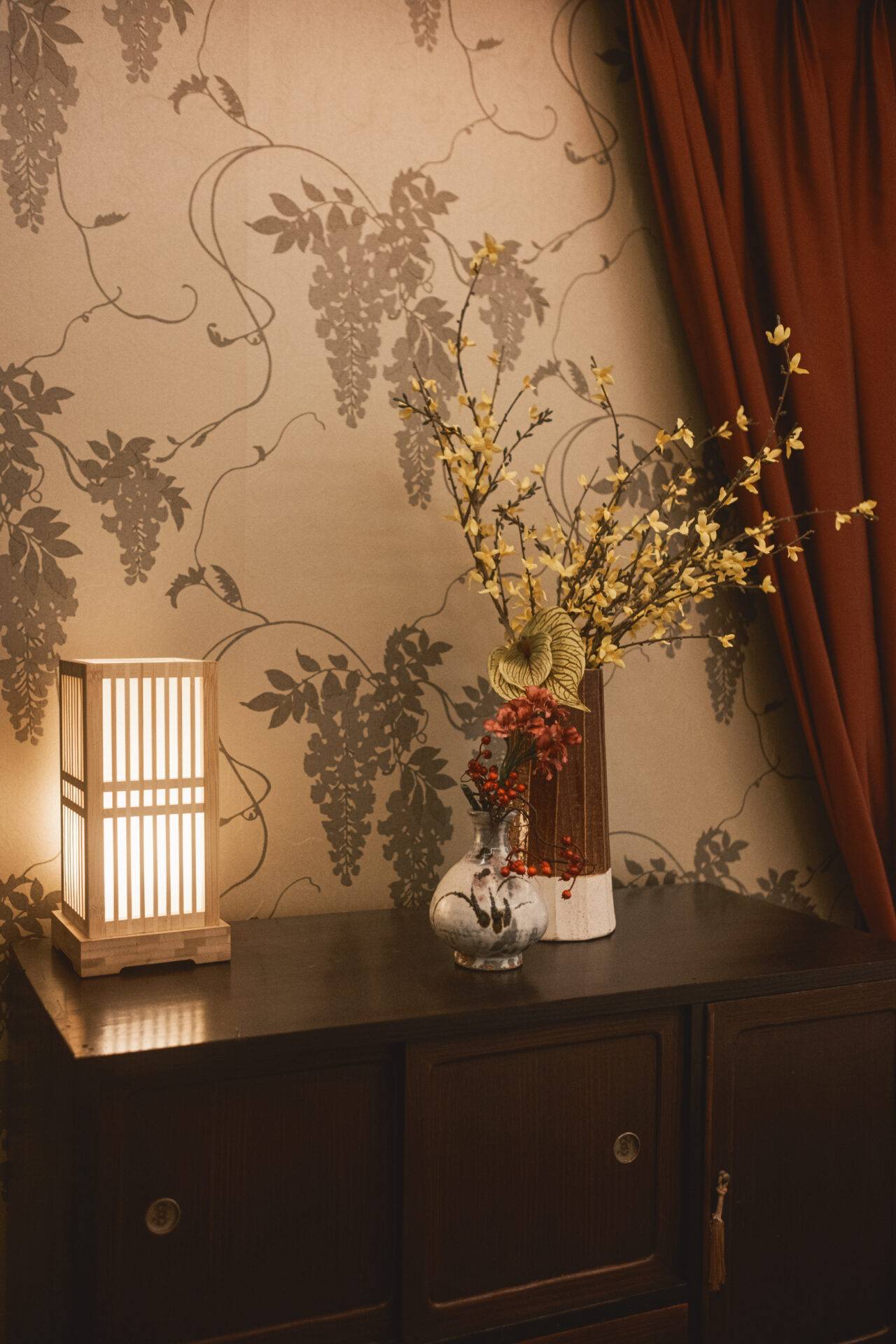 伝統的な和の趣と現代的な照明デザインを融合させ、心身ともに癒やされながら非日常の美を堪能できる空間に仕上げました。